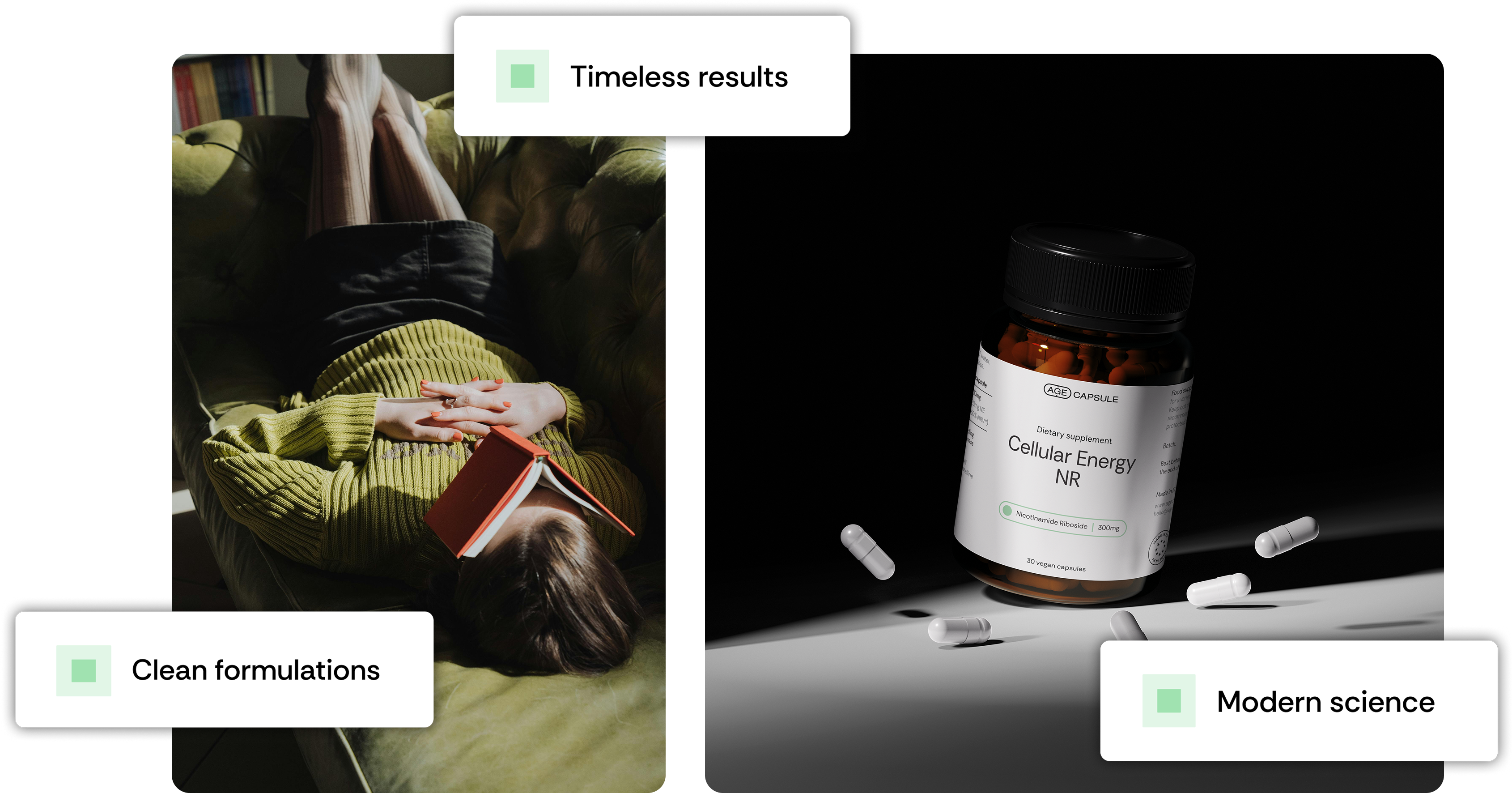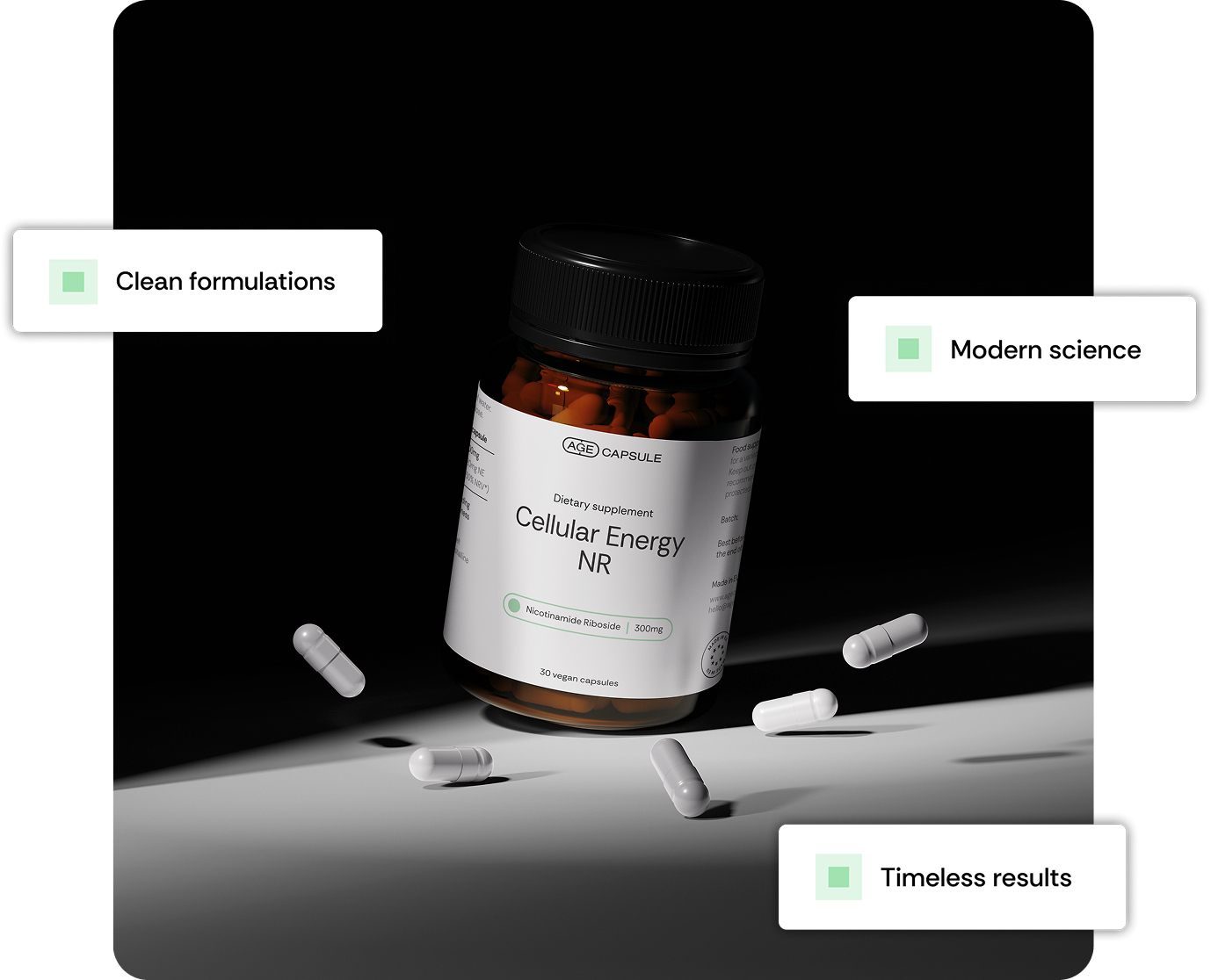 Longevity begins at the cellular level. Age Capsule supplements fuel your energy, clarity, and resilience - every single day.