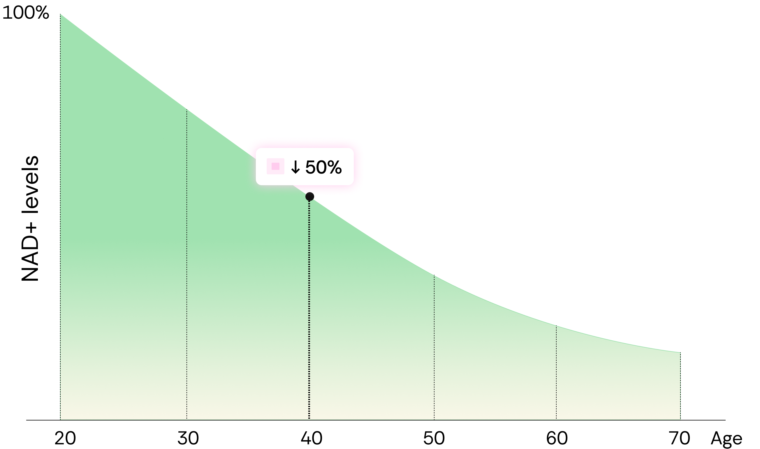 Your longevity molecule NAD+ levels plummet nearly 50% by age 40