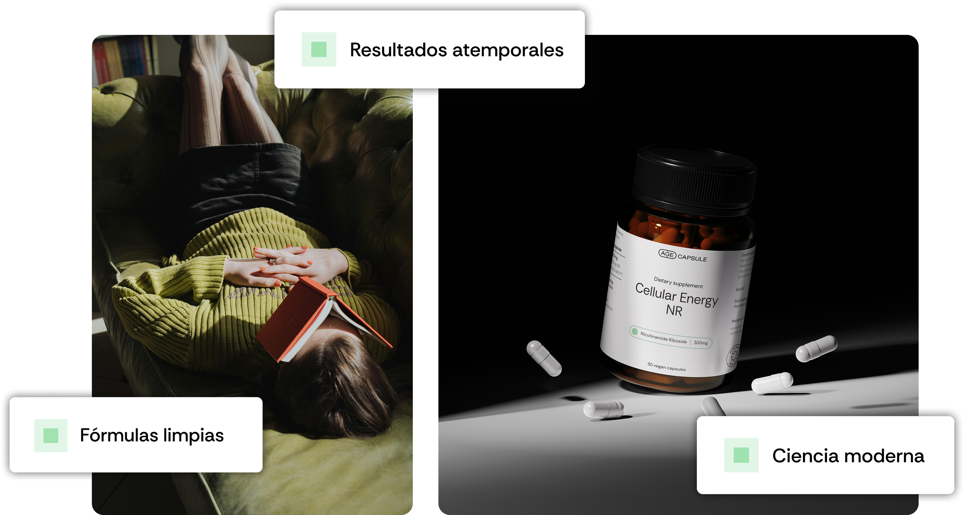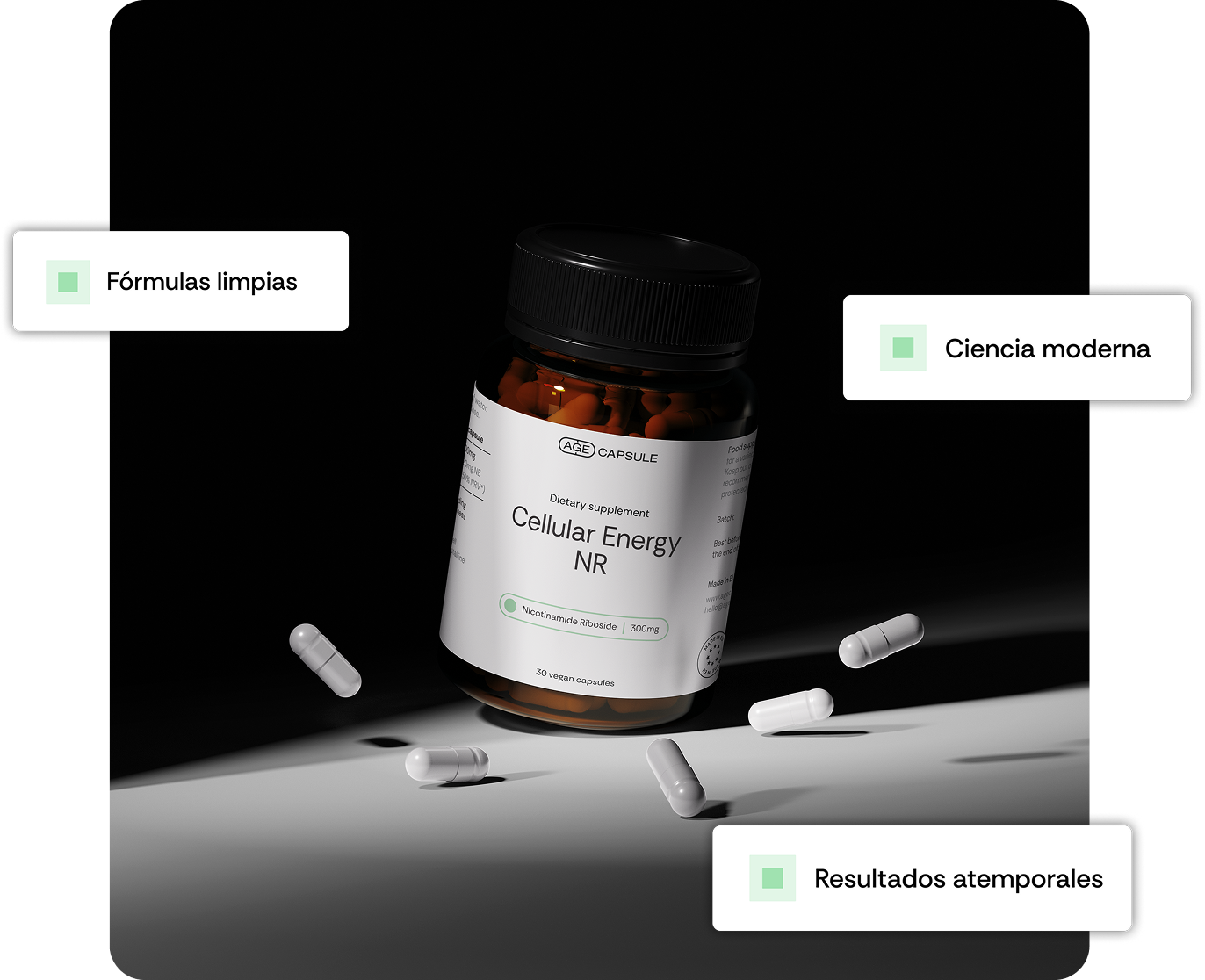 Restaure su energía celular desde el interior. Age Capsule NR ofrece una forma pura y potente de Ribósido de Nicotinamida (NR), un nutriente innovador que estimula la producción natural de NAD+ en su organismo.